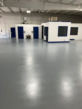 We first foam-cleaned all oil residue from the deck and walls, then sprayed them with a fresh coat of white paint. The flooring was diamond ground for smoothness, followed by the application of a sand broadcast epoxy system, ensuring a durable and slip-resistant finish.